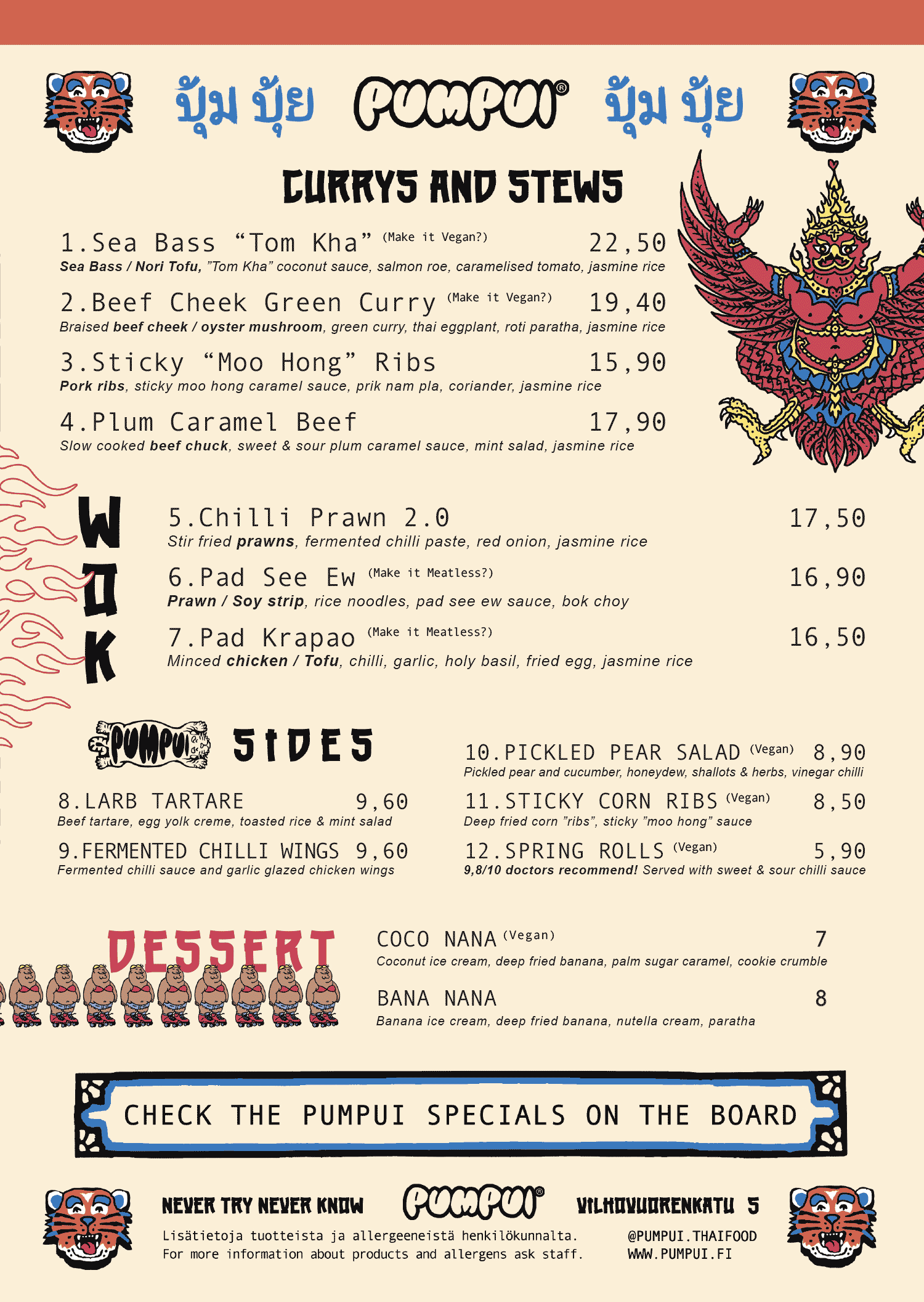 Tarjoamme herkullista currya ja thaimaalaista katuruokaa Pumpuin tapaan.